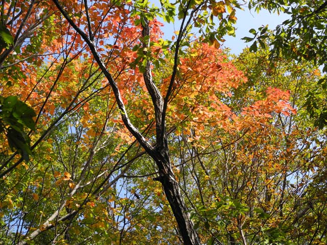 | 紅葉の明るい林を登ります。ブナも有りました | |