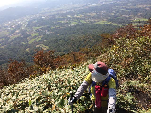 | 稜線手前の急登で蒜山高原の展望が開けます。 | |
