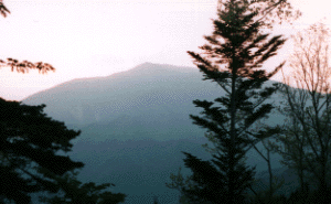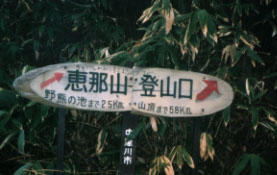 1999年5月8・9日 5月の第2土曜日の午後、緑の濃くなった城山公園を出発。今宵の宿、仲間の所有する根の上高原の別荘をめざす。標高900mの別荘地はミツバツツジの季節、水辺には水芭蕉が咲き、路傍の蕨を摘んでさっそく酒のつまみの料理にしてもらう。 翌日、目の前に聳える恵那山、その山頂近くから登る日の出を見ながら朝食。慌ただしく登山口の黒井沢へと出発する。それにしても、昨夜の夕食 ・朝早くからの朝食の準備と後片付け、女性陣の活躍には目を見張るばかり。 何もしないでウロウロしていた小生は美味しく出来た料理を人一倍食べて満足満足・女性陣には感謝感謝である。 7時半、登山口の駐車場はすでに満杯に近く、遠く京都や神奈川ナンバーの車もいる。周囲は若葉の季節。 木々の若葉は夫々の色で柔らかく山を包み美しく見る者の心を癒やしてくれる。 林道が終わり大木の間を縫って登山道が続く。沢と道の間にシロバナエンレイソウが咲いていた。褐色の花を付けるエンレイソウは幽霊を連想させて薄気味悪いがこの花はピンク掛かった白で形もとても良くて清楚な感じがする。下の方では満開だったオオカメノキも野熊の池では漸く蕾が膨らみ始めたところだった。池をすぎると唐松の芽も堅く春はまだまだこれから…の雰囲気。 やがて尾根道となり中央アルプスや南アルプスがくっきり見える。そして、針葉樹林に入ると雪が現れる。それが頂上付近では4〜50pの積雪、 一変に冬に逆戻りした感じである。山頂小屋付近や三角点付近は日当たりも良く、のどかな昼食休憩をとることができた。しかし、この恵那山登山は往復8時間の歩行でとてもきつい山行きであった。