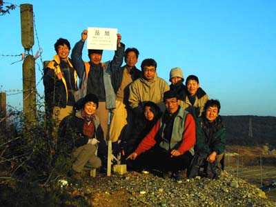 | 2000年1月1日 日の出 am7:12 参加者11名 ここは、私たちだけの秘密の山 山が無い尾張旭市で一番高い所 市のお墨付きの三角点で−135mです |